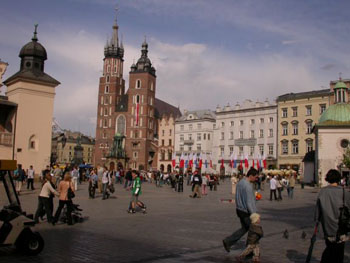 Mercato dei Tessuti (Sukiennice) e soprattutto la chiesa di Santa Maria.
